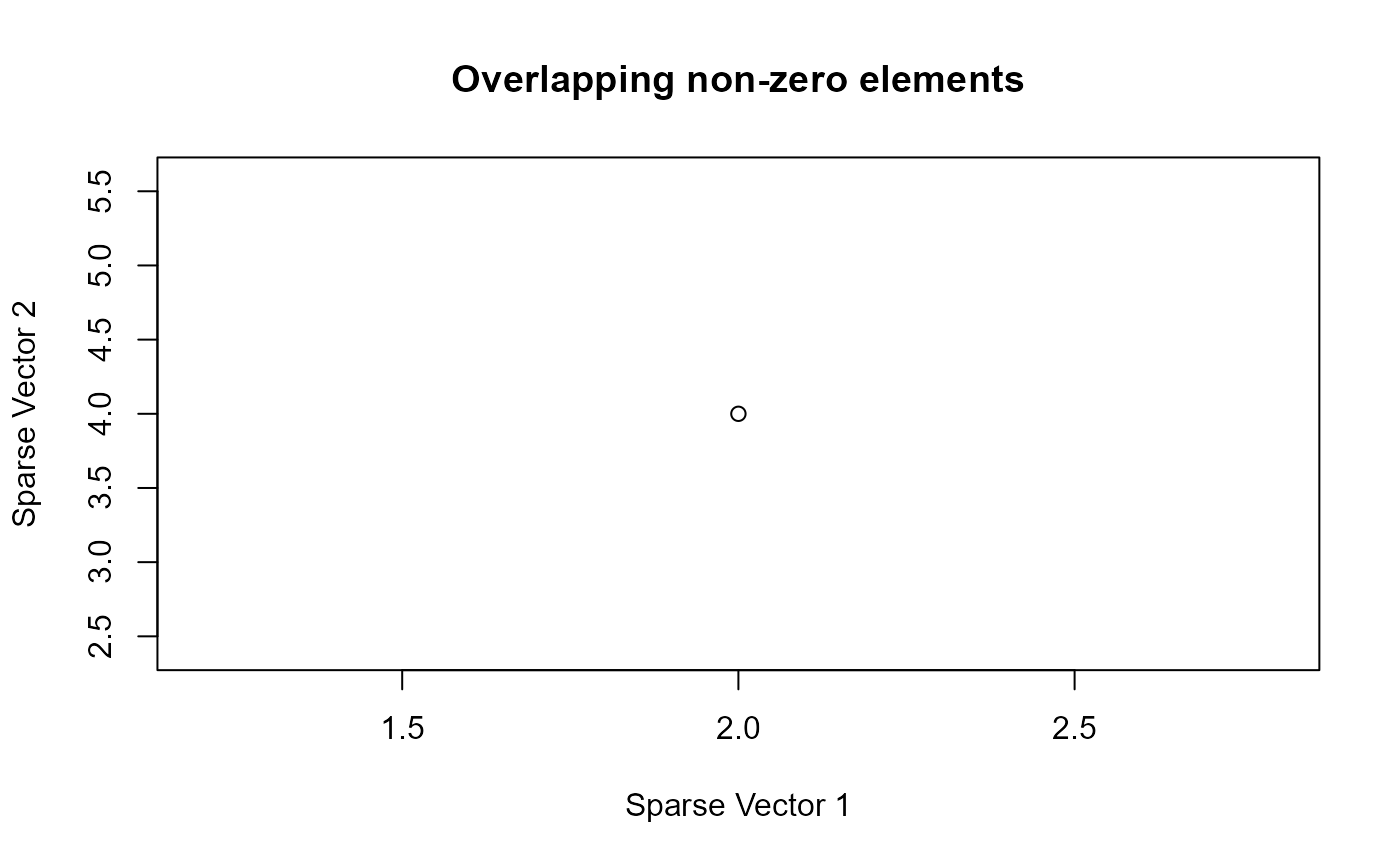 plot(x, y, ...)NULL. Produces a scatter plot of overlapping non-zero elements.